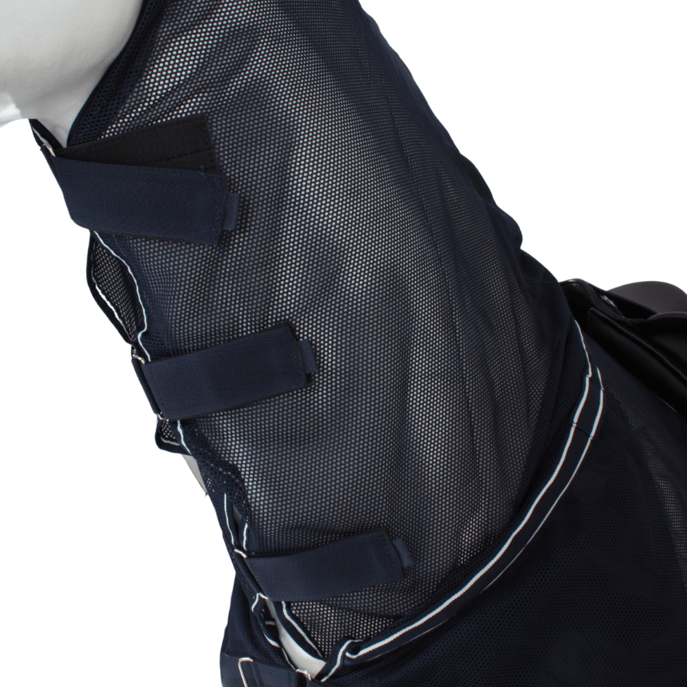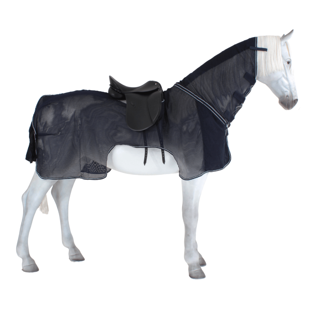 La couverture anti-mouches Busse de haute qualité est à mailles serrées et fabriquée d'un filet léger et aéré en polyester. Malgré la légèreté de cette fine couverture d'été pour chevaux, elle reste résistante aux déchirures.